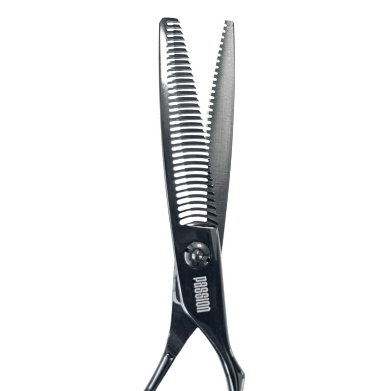 Passion Phantom Thinning to zaawansowane technicznie nożyczki degażujące. Wyposażone w wydłużone ostrza, ergonomiczną rękojeść i powłokę tytanową, pozwalają na szybkie i precyzyjne wykańczanie oraz modelowanie włosów. System śruby kulkowej zapewnia płynny i stabilny ruch ostrzy, a podwójne zęby minimalizują uszkodzenia włosów podczas przechodzenia przez otwartą część ostrza, typowe dla klasycznych degażówek.